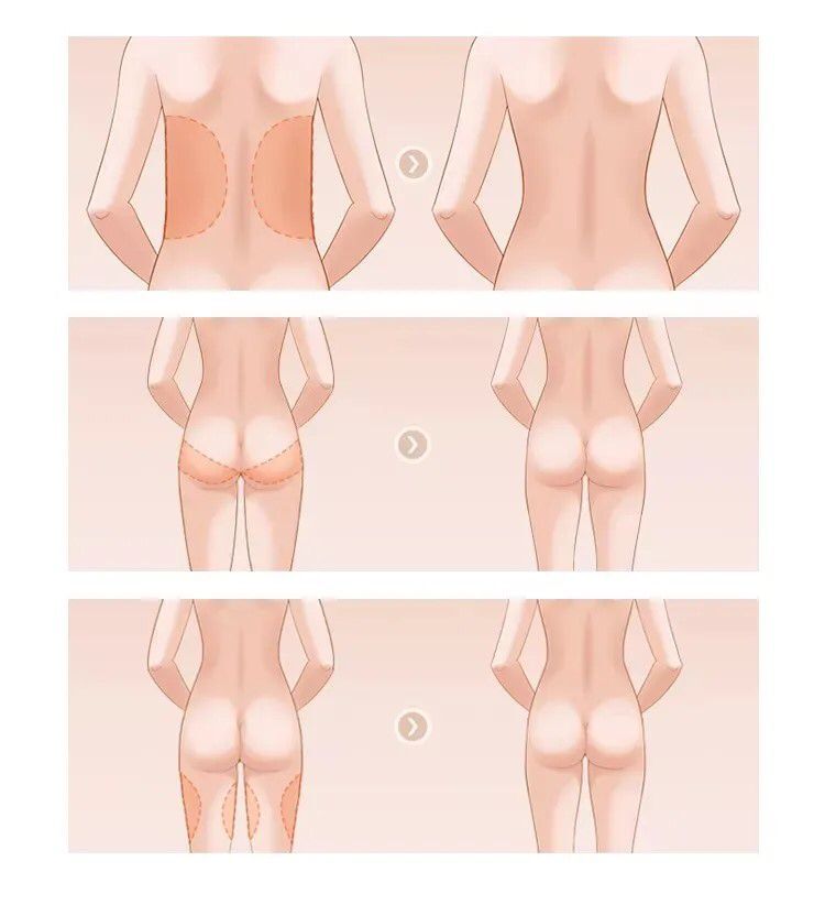 Сфера воздействия аппарата очень широка: живот, ягодица, бедра, плечи, подбородок, шея и другие области.